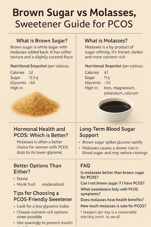 Choosing the right sweetener can make a big difference when managing Polycystic Ovary Syndrome (PCOS). In this guide, we compare brown sugar and molasses to help you decide what supports your hormonal health best.